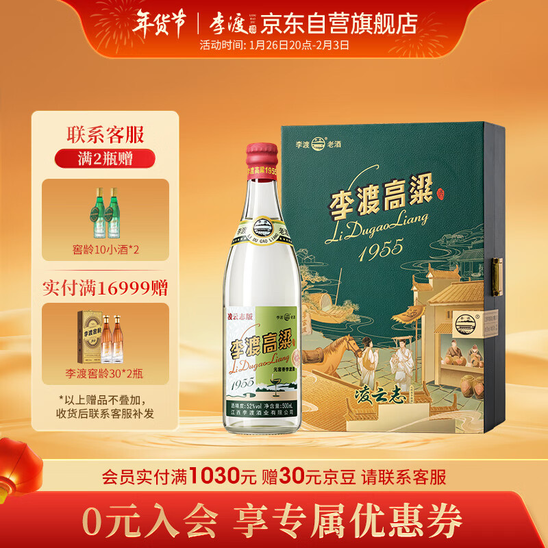 李渡 高粱1955 凌云之志 元窖香白酒 高粱酒52度500ml 盒装 年货礼盒价格:998.00元!
