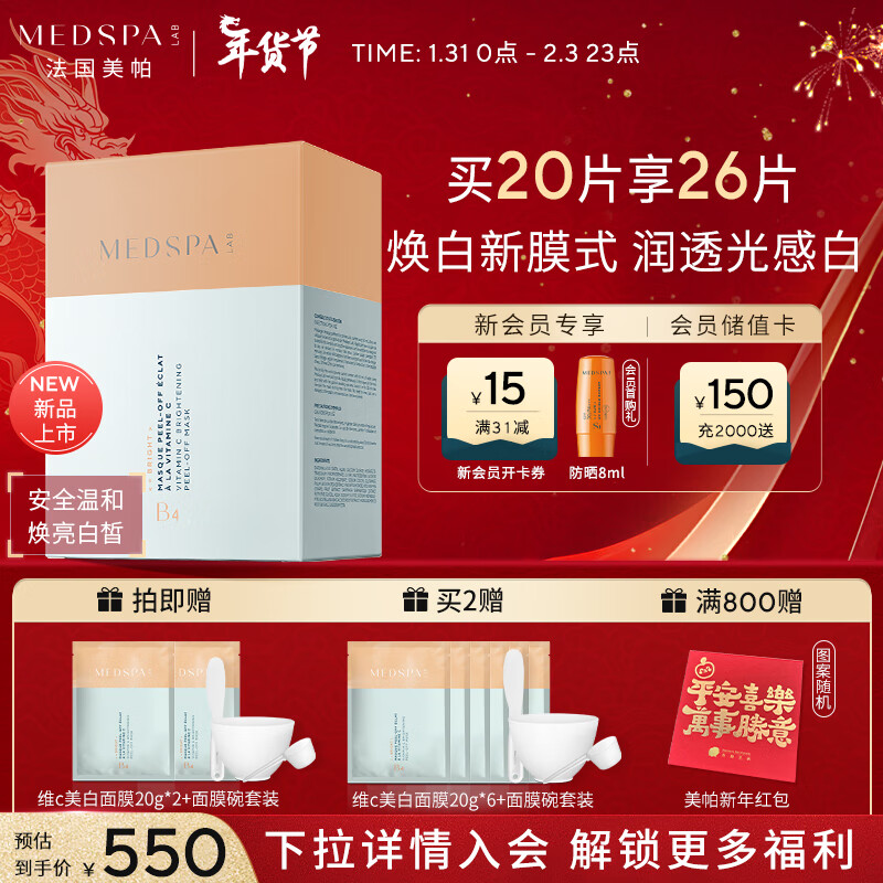 美帕(MEDSPA)维生素C美白面膜20g*10 祛斑冬季焕白提亮粉膜新年礼物送女友价格:550.00元!