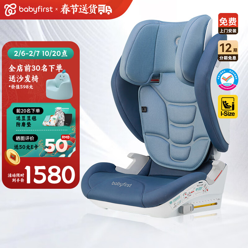 宝贝(Babyfirst)耀趣大儿童座椅汽车载3岁以上-12岁i-Size增高垫 柔雾蓝R943A价格:2080.00元!