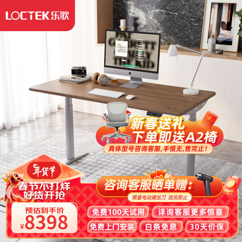 乐歌电动升降桌电脑桌站立办公学习桌E6-HD/1.6m实木黑胡桃木色套装价格:9298.00元!