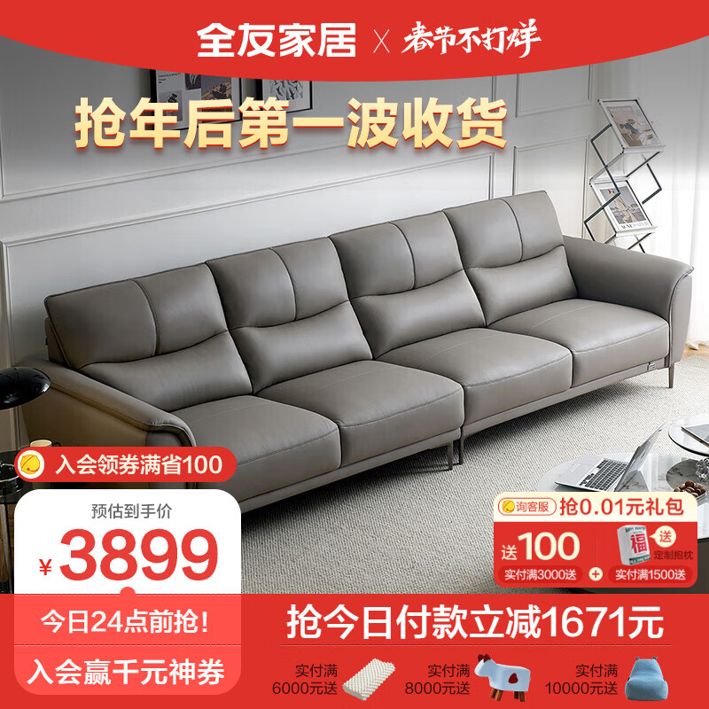 全友家居 简约头层牛皮沙发金属脚饱满座靠真皮沙发客厅家具112011B价格:5570.00元!
