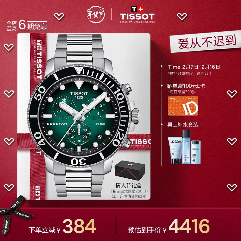 天梭(TISSOT)瑞士手表 海星系列 石英男表 年货礼盒送男友T120.417.11.091.01价格:4746.00元!