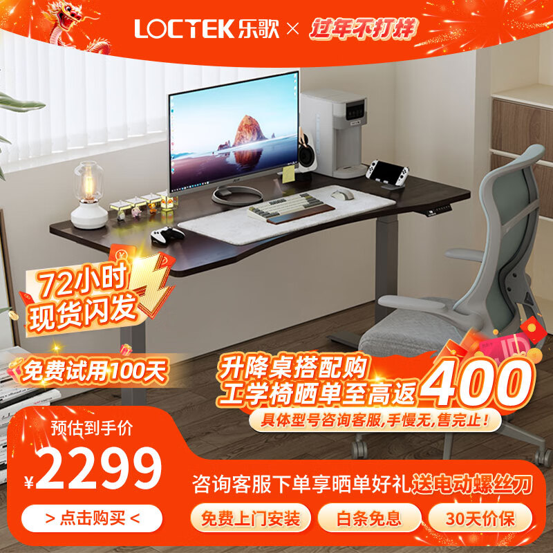 乐歌电动升降桌电脑桌双电机站立办公 E3/1.4m 凹型实木黑胡桃木色价格:2539.00元!