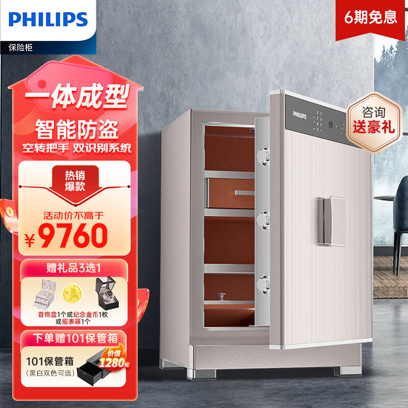 飞利浦保险柜家用商用 多重报警功能 指纹密码双识别 3C新国标认证 双系统密码箱SBX701 68CM(星空灰)价格:9760.00元!