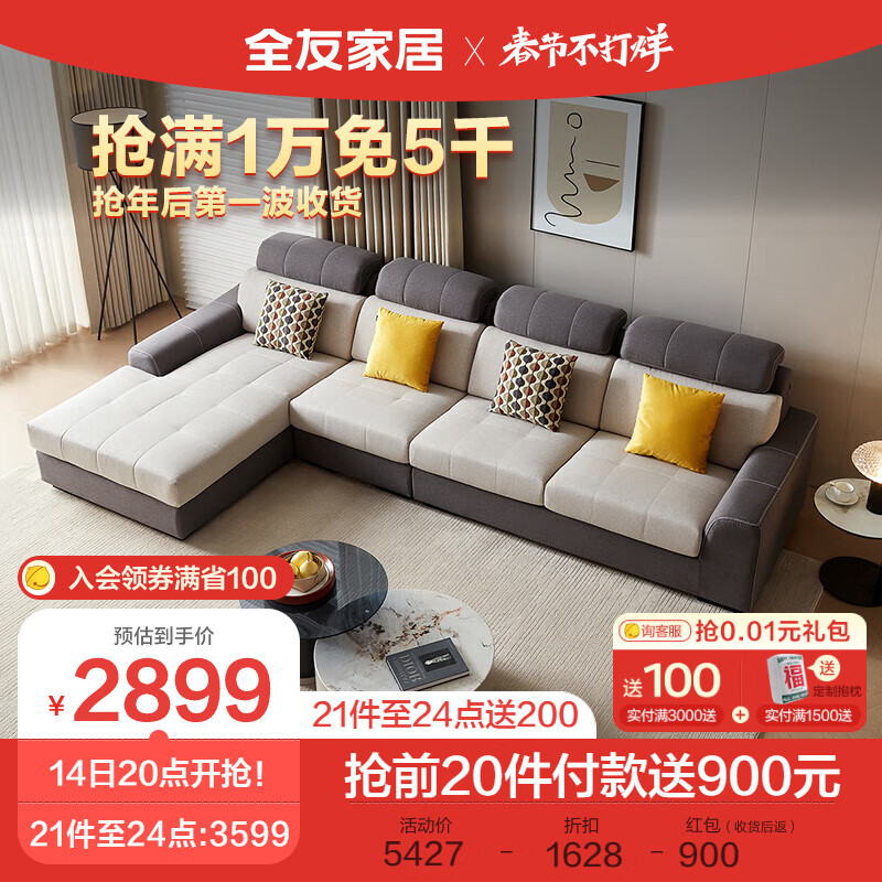 全友家居 沙发现代简约布艺沙发小户型客厅沙发整装沙发102251A价格:5427.14元!