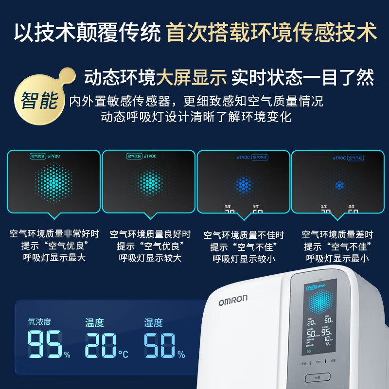 欧姆龙(OMRON)5L升医用制氧机 大流量家用吸氧机环境传感系统轻音低分贝老人孕妇氧气机Y-511WT价格:5080.00元!