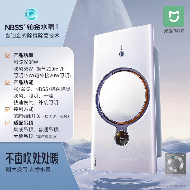 奥普(AUPU)浴霸Q360S-Pro空气管家热能环风暖铂金水氧数显 已接入米家价格:2999.00元!