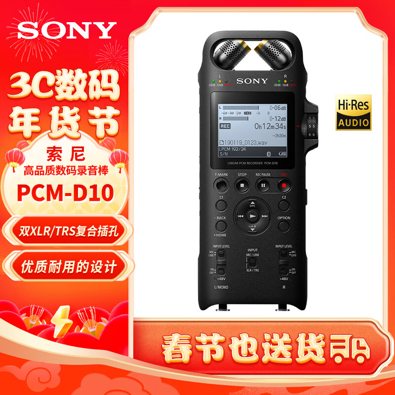 索尼(SONY)专业数码录音笔PCM-D10 16GB 黑色 数字降噪Hifi无损播放 大直径三向双麦克风价格:2829.00元!