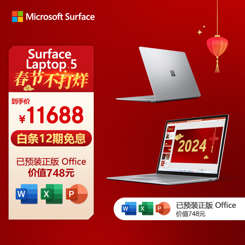 微软Surface Laptop 5 笔记本电脑 i7 8G+512G 亮铂金 Evo认证15英寸2.2K触控屏 办公本年货节价格:11688.00元!