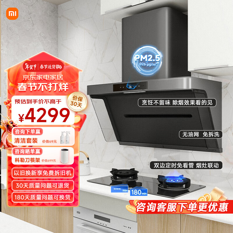 米家小米抽油烟机净烟机P1烟灶套装侧吸智能吸油烟机家用变频大吸力MJ04CY(P1净烟机+S1液化气灶)价格:4299.00元!