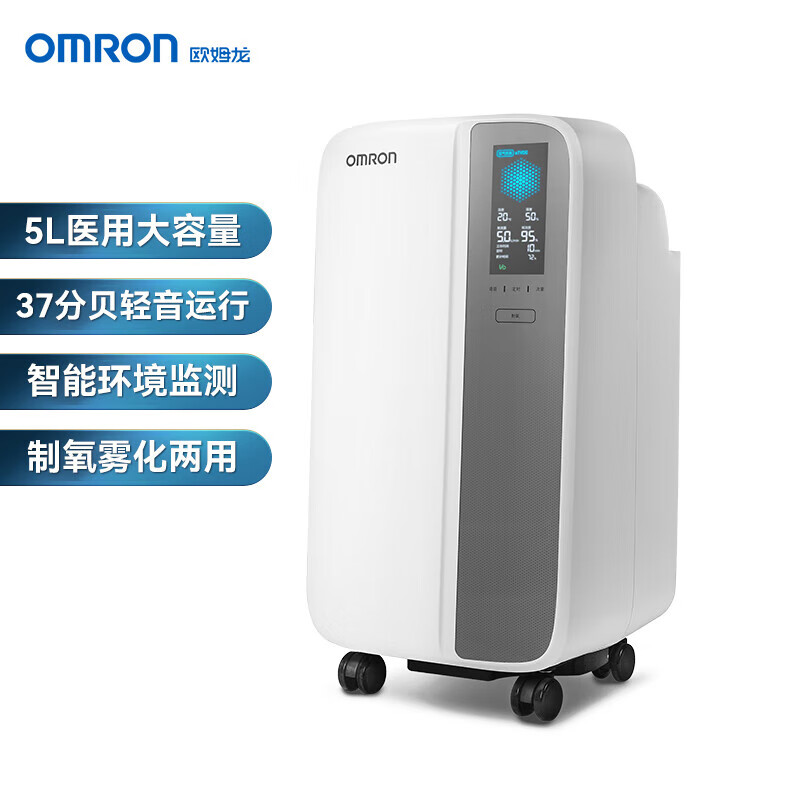 欧姆龙(OMRON) 5L升医用制氧机 大流量家用吸氧机环境传感轻音低分贝Y-511WT指夹式血氧仪HPO-100套装价格:5378.00元!
