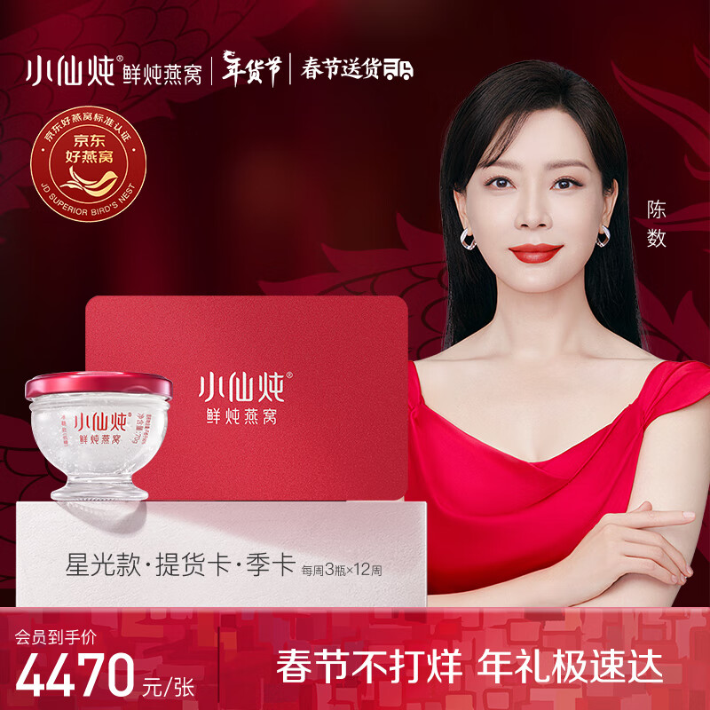 小仙炖 鲜炖燕窝礼品卡 尊享季卡 星光款(70g*36瓶)【陈数同款】 孕妇补品 即食礼盒 送礼价格:6348.00元!