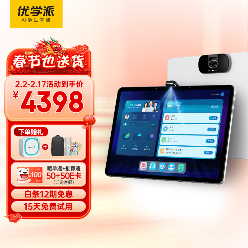 优学派AI学习机P30 8+256G 12.2英寸 大屏全局护眼平板电脑小初高学生英语学习点读机价格:4398.00元!