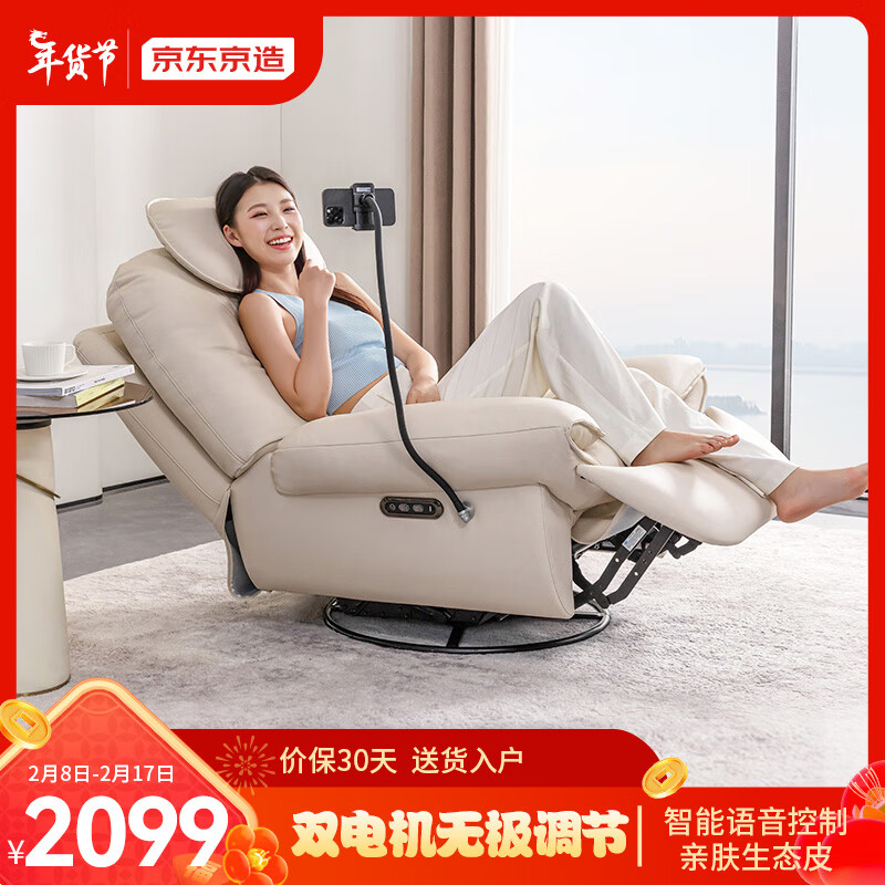 京东京造单人电动沙发 纳帕生态皮智能声控双电机 客厅小户型单椅白SE18价格:2299.00元!
