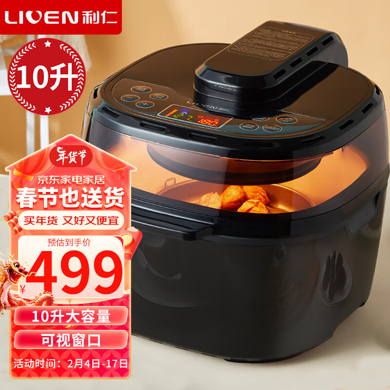 利仁(Liven)空气炸锅可视家用10升大容量智能无油电炸锅蒸汽炸锅 多功能空气炸烤箱空气锅薯条机KZ-D1001价格:559.00元!