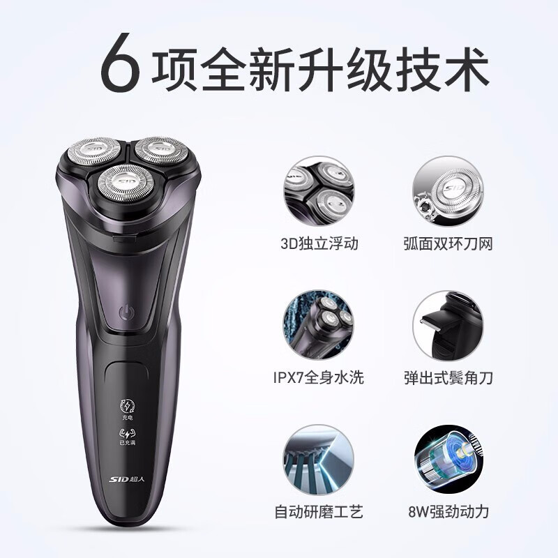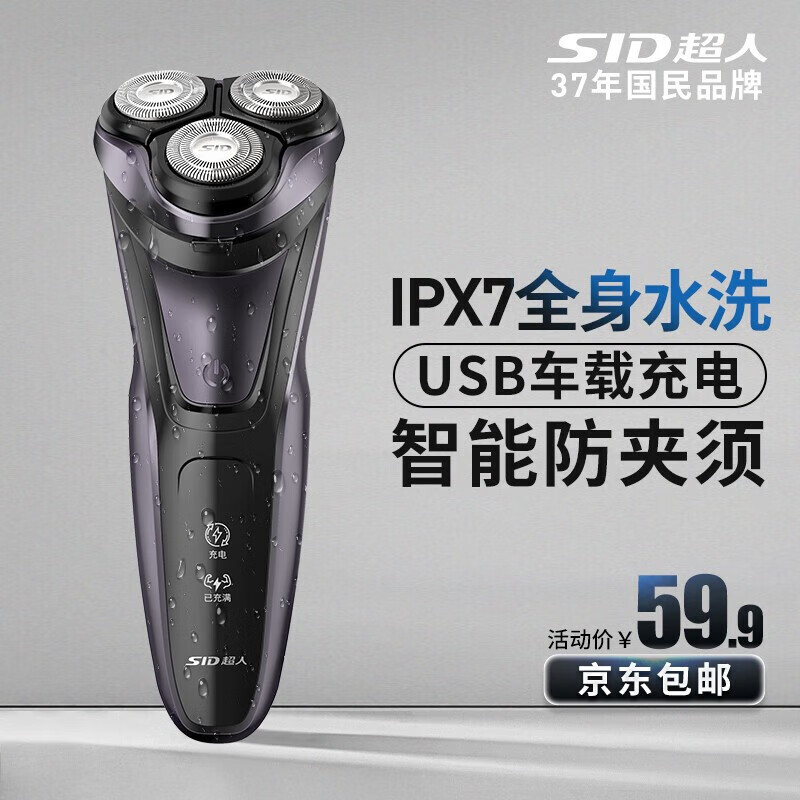 超人(SID) 智能电动剃须刀全身水洗胡须刀USB充电刮胡刀RS337A价格:69.90元!