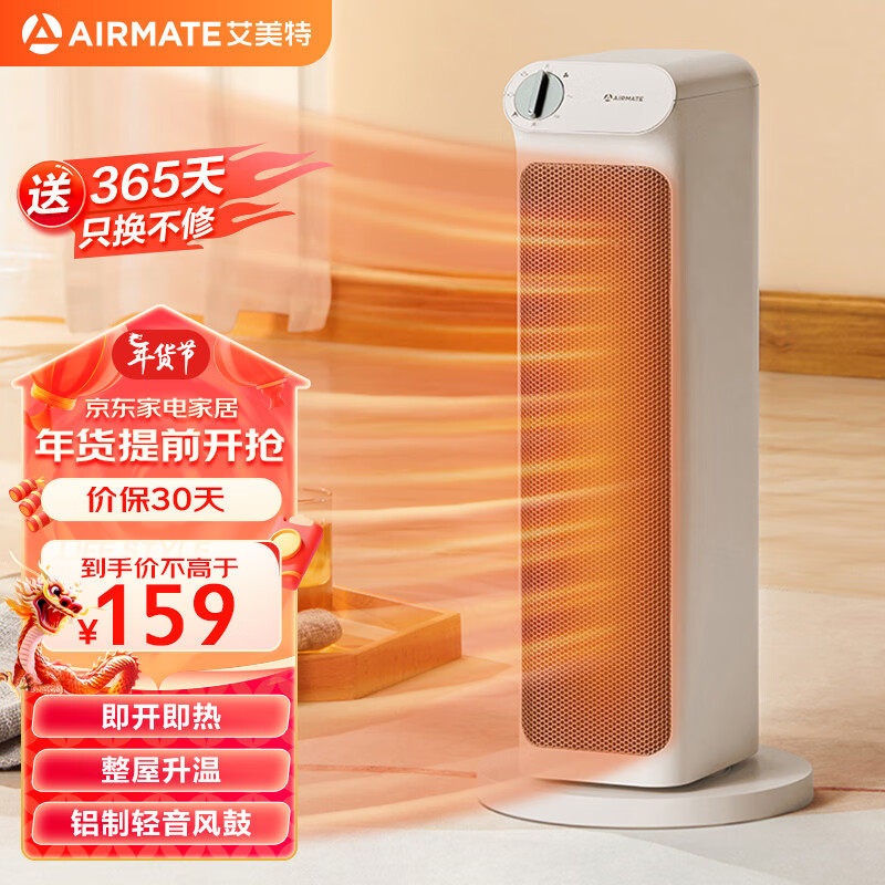 艾美特(AIRMATE)暖风机/取暖器/电暖器/电暖气片家用/电热风扇/烤火炉 塔式轻音节能便携式速热暖风机 HP20-K11价格:154.00元!