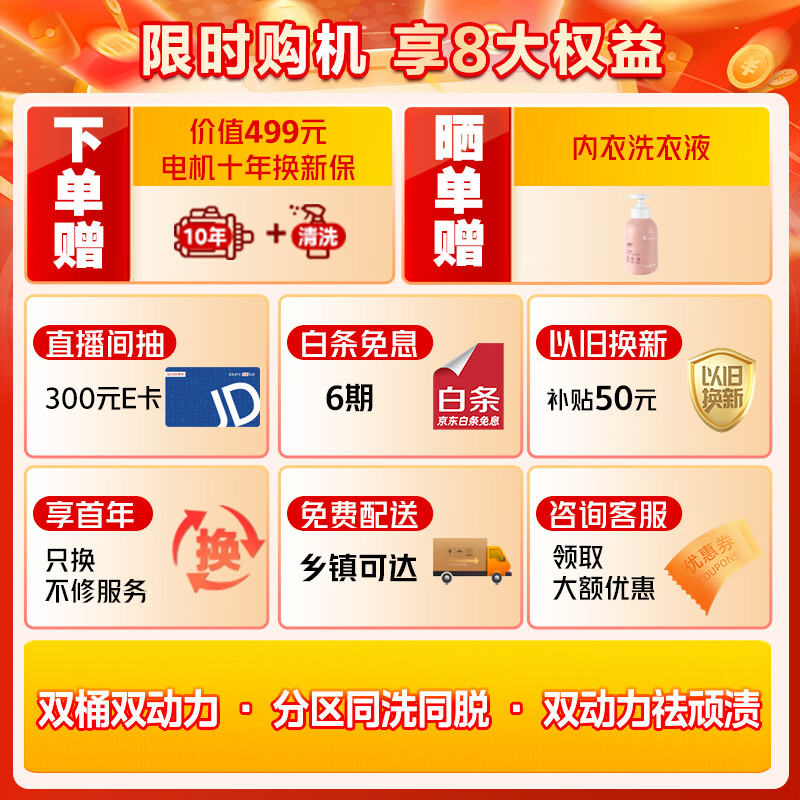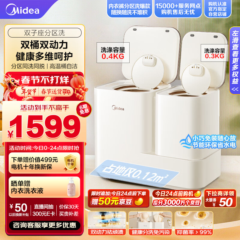 美的双子座分区洗衣机 内衣裤洗衣机小型 迷你洗衣机 双动力少缠绕 同洗同脱 MNB7VA0E价格:1599.00元!