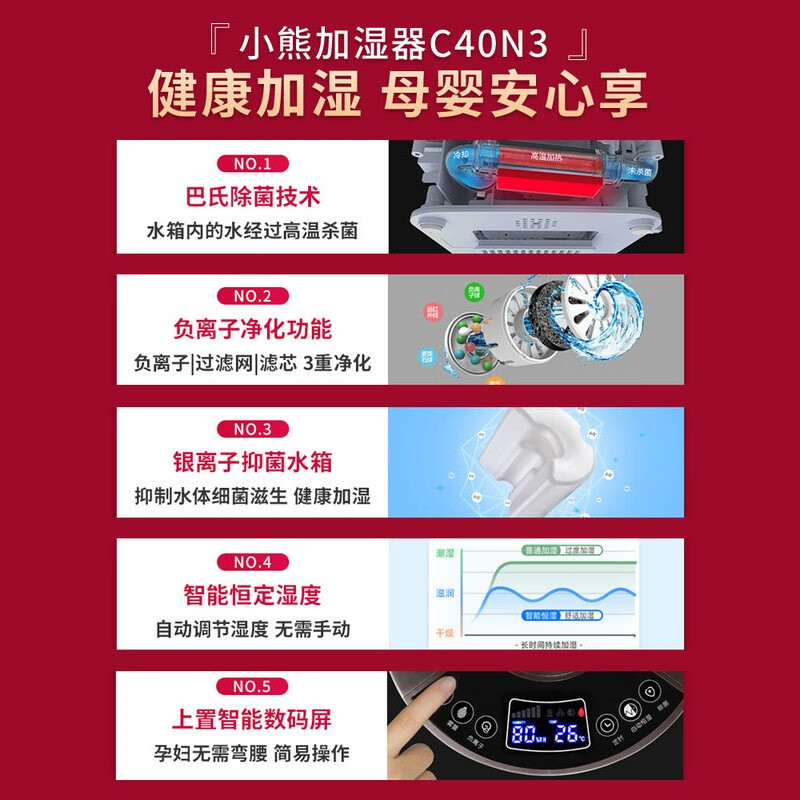 小熊(Bear)加湿器卧室婴儿 家用办公室迷你空气加湿器大雾量低噪桌面 高温除菌 4升 JSQ-C40N3价格:299.00元!