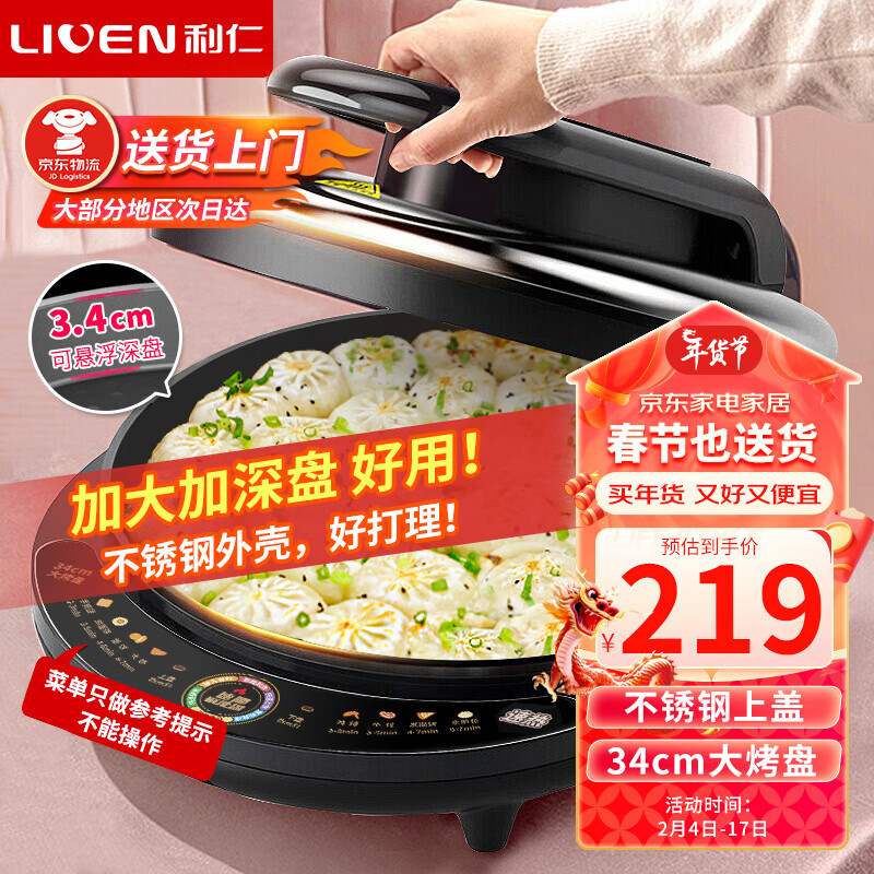 利仁(Liven)电饼铛加深加大家用电饼档大号双面加热烙饼锅煎饼锅三明治早餐机电饼锅大尺寸电煎锅LR-J8345价格:249.00元!