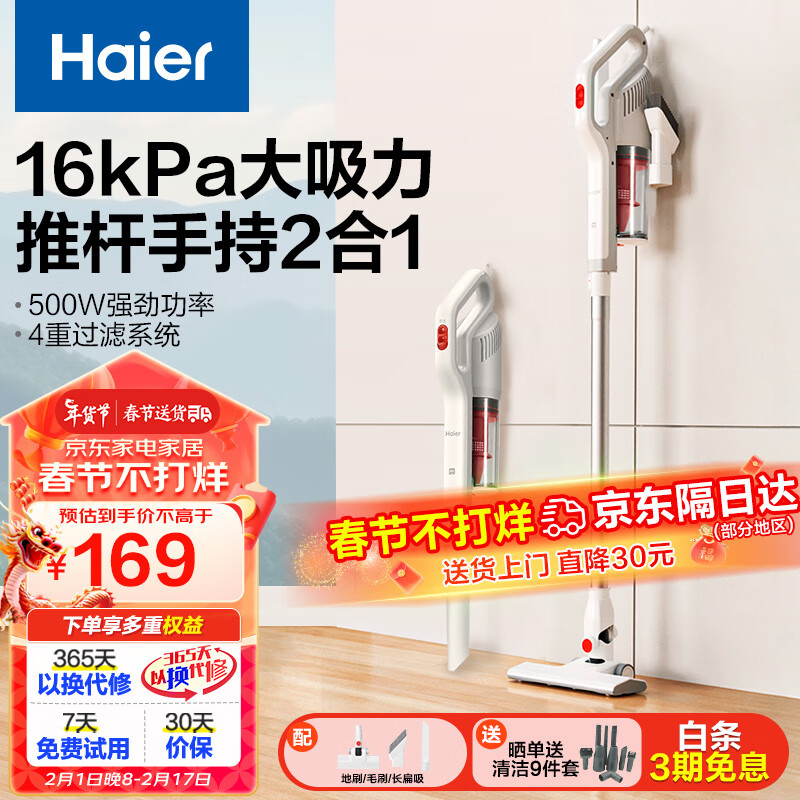 海尔(haier)吸尘器家用手持有线推杆二合一 强劲除尘16kpa吸力宠物车载清洁G16W白色价格:168.00元!
