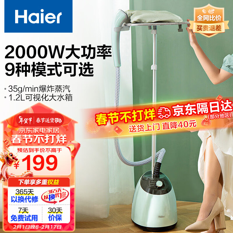 海尔(haier)挂烫机家用蒸汽小型挂立式大功率商用服装店烫衣服熨烫机神器 HY-GD2005L2价格:219.00元!