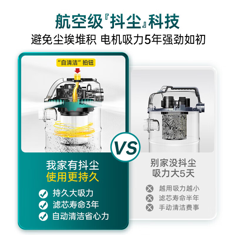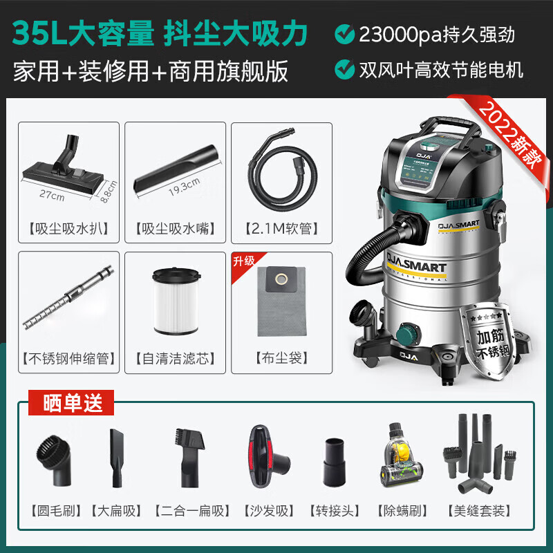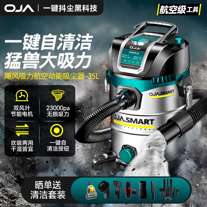 OJA【自清洁抖尘】桶式吸尘器工业家用干湿吹1600W大功率商用大吸力装修美缝开荒保洁工厂车间办公室价格:749.00元!