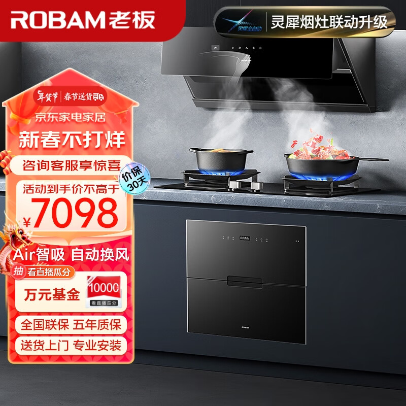 老板(Robam)抽油烟机探索家A8CS智能变频聪明25m3/min灶具消毒柜三件套29A8CS+57B6D+XB710A(天然气)价格:6598.00元!