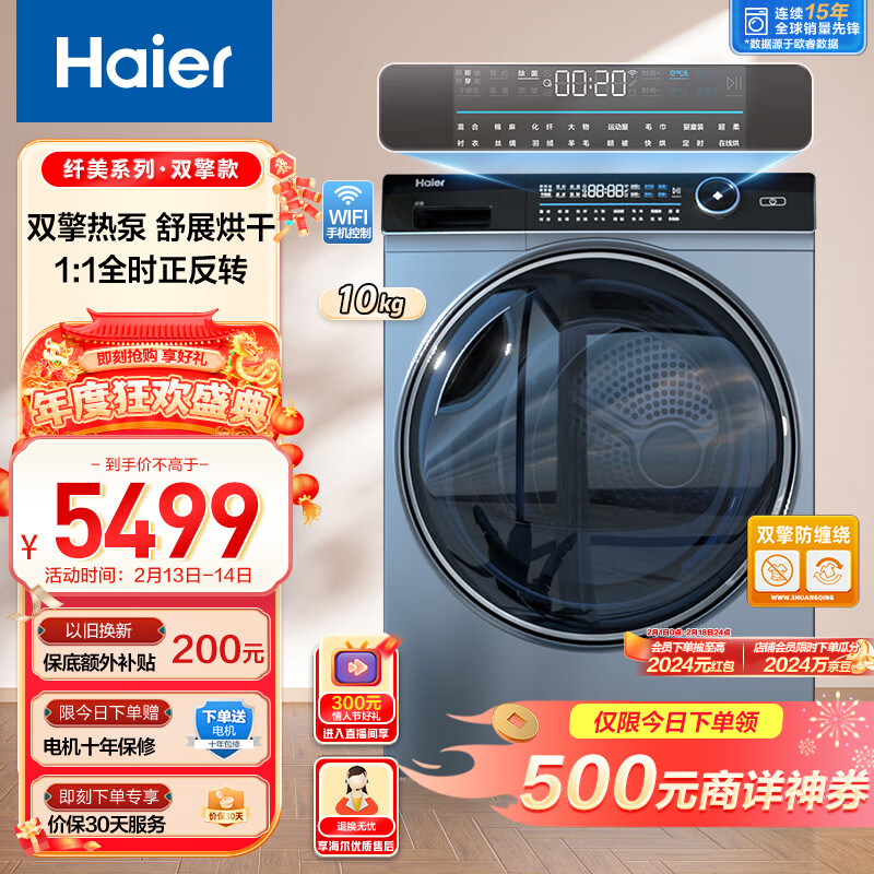 海尔(Haier)纤美176烘干机家用 10公斤双擎热泵干衣机 超声波雾化空气洗 除菌净螨 HBNS100-FQ176U1 以旧换新价格:5499.00元!