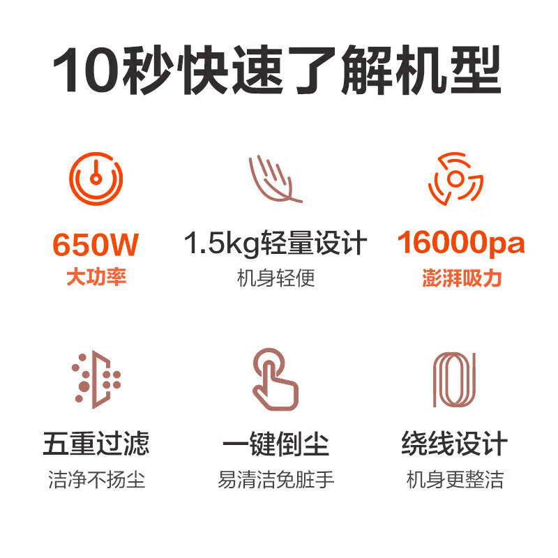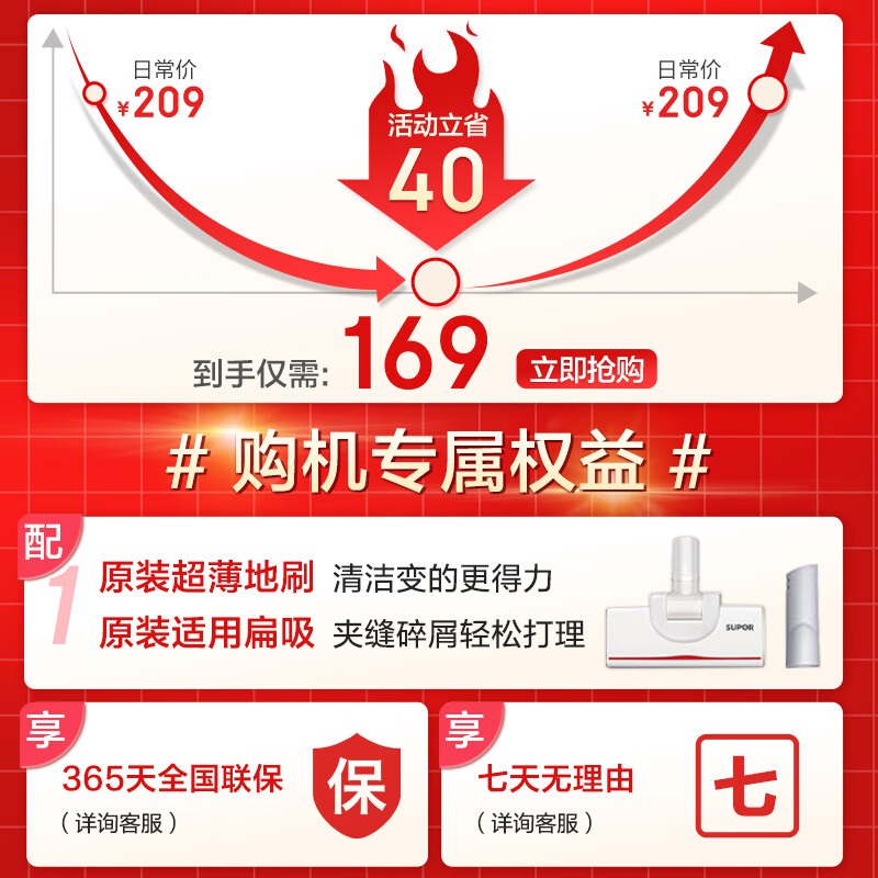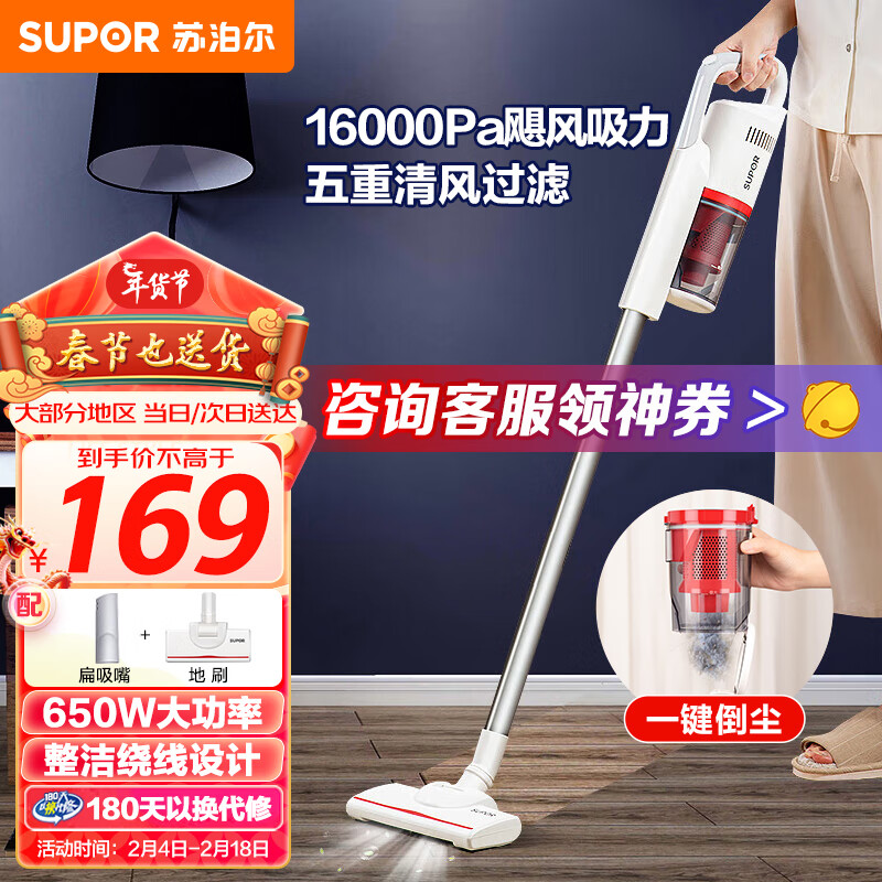 苏泊尔(SUPOR)手持吸尘器家用随手吸小型大吸力二合一除尘机宠物家庭适用VCS60A-C2价格:169.00元!