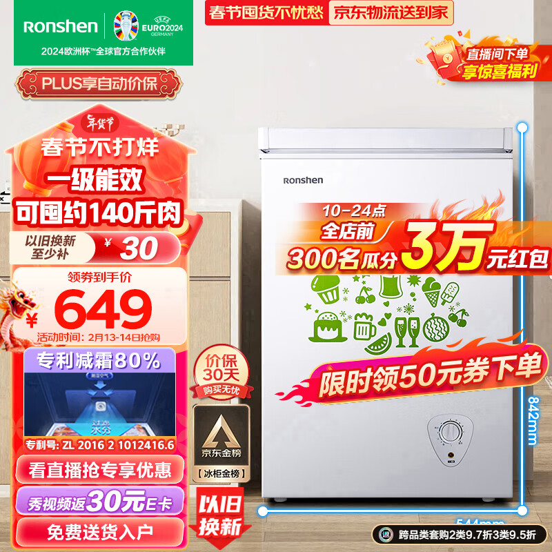 容声(Ronshen) 100升低霜家用冰柜冷藏冷冻转换单温冷柜 一级能效 顶开门小冰柜母婴母乳小冰箱BD/BC-100MB价格:799.00元!