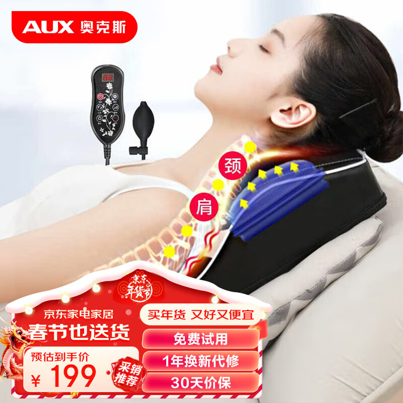 奥克斯(AUX)颈椎按摩器车载按摩靠枕GL-27Z 揉捏震动 背部腰部按摩仪按摩枕靠垫颈椎枕 节日礼物 送男友价格:229.00元!