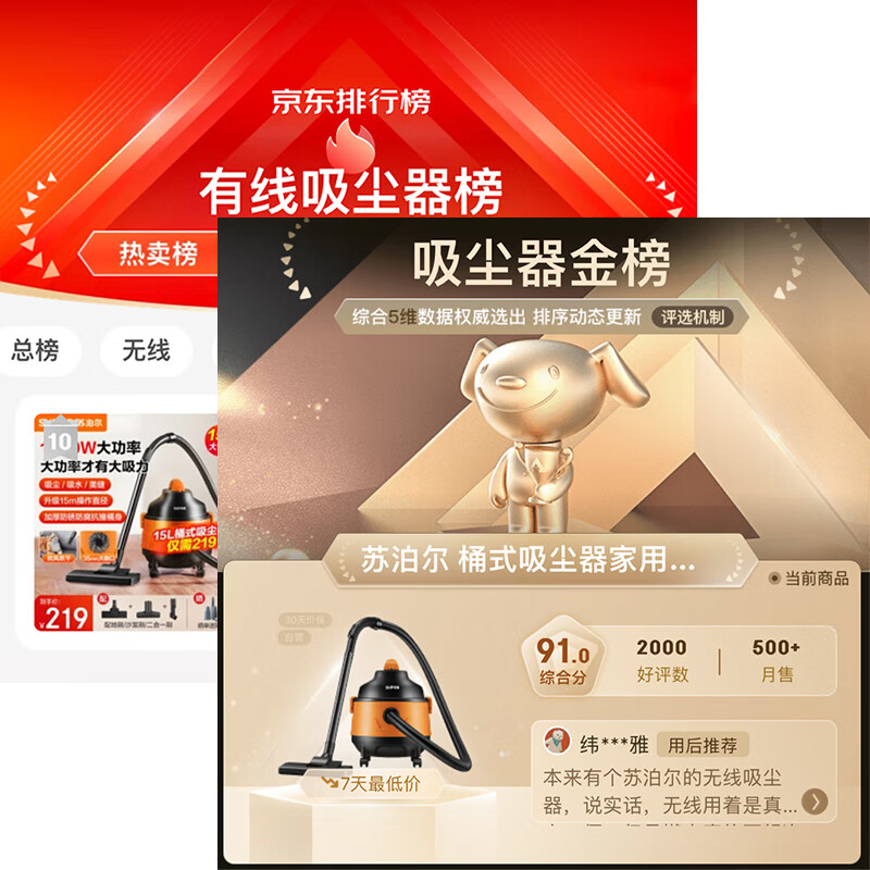 苏泊尔(SUPOR)桶式吸尘器家用强劲大吸力工业吸尘器开荒干湿吹吸尘机15L大容量EVCB-70A价格:219.00元!