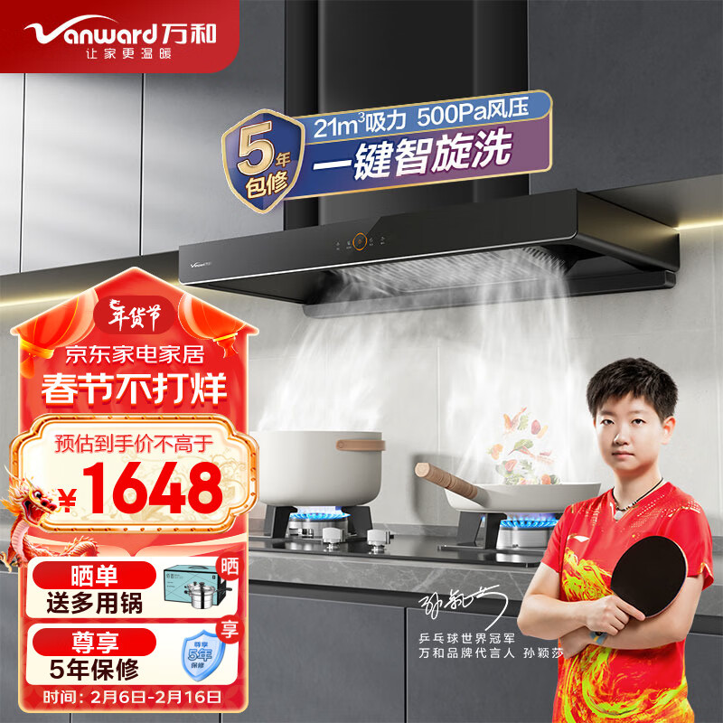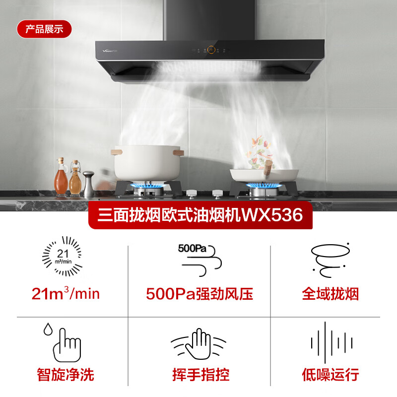 万和(Vanward)欧式油烟机家用顶吸式 21m3/min大吸力 烟灶套餐抽油烟机燃气灶具套装 WX536+B7L51(液化气)价格:1648.00元!