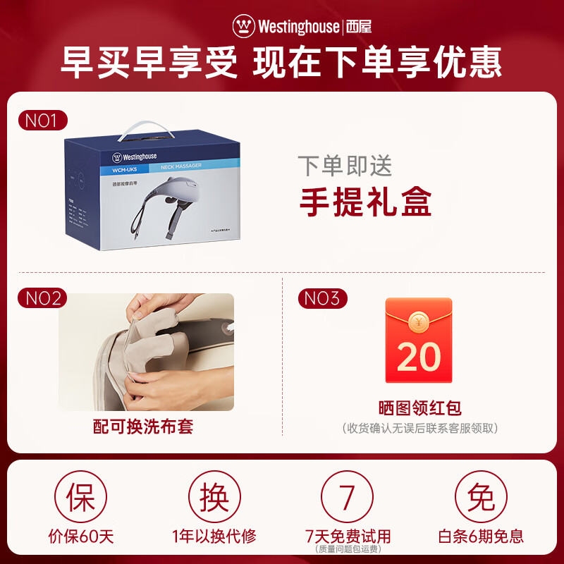 西屋(Westinghouse) UJ01A/UK5颈椎按摩器枕头肩颈按摩器斜方肌颈部按摩仪腰部颈椎按摩枕情人节生日新年礼物送女友 【80%客户选择升级款】斜方肌-UK5 高档实用节日礼物送爸爸妈妈父价格:999.00元!