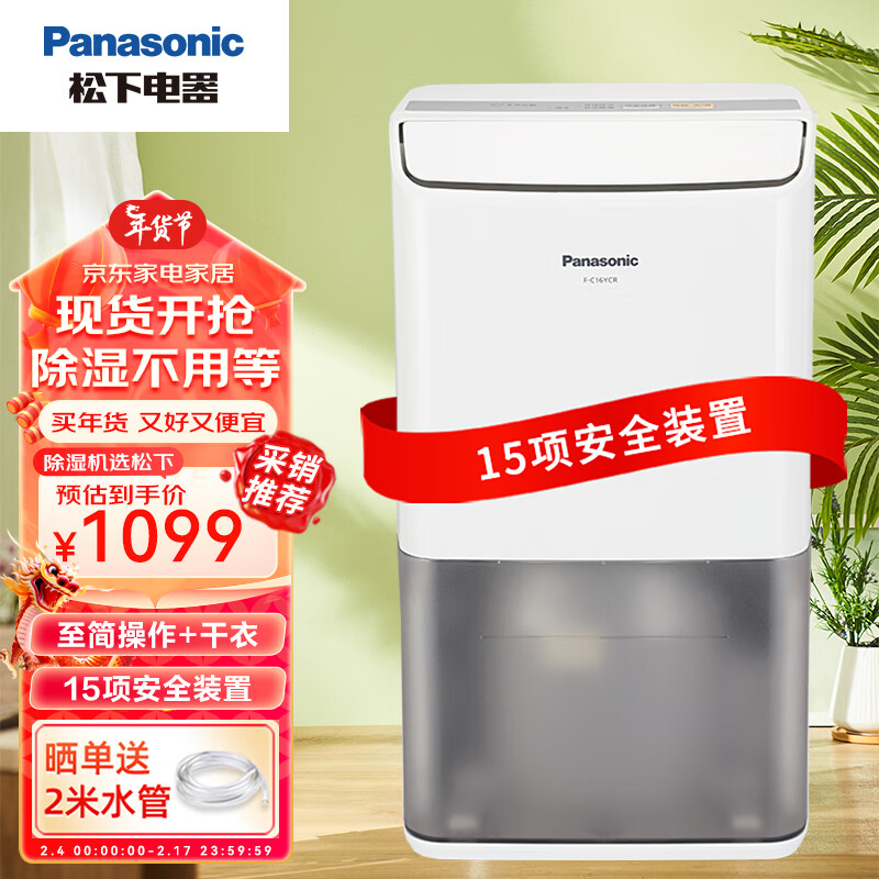 松下(Panasonic)除湿机/抽湿机 家用卧室办公室地下室轻音干衣吸湿器F-C16YCR价格:1221.00元!