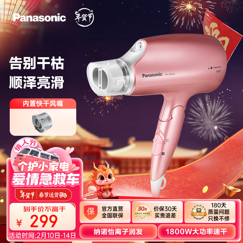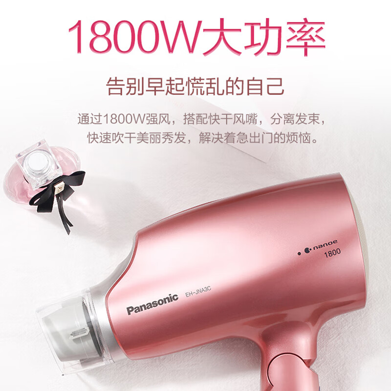 松下(Panasonic)电吹风机大功率送老婆女友高速大风力速干折叠便携 纳诺怡水润吹发护发电吹风筒EH-JNA3C粉色价格:329.00元!