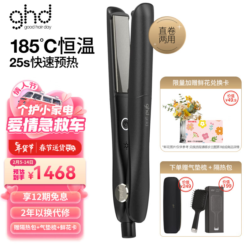 ghd黄金直板夹 185℃恒温夹板 直发卷发两用 减少热损伤男女防烫直发器女卷发棒造型经典黑送女友礼物价格:1508.00元!