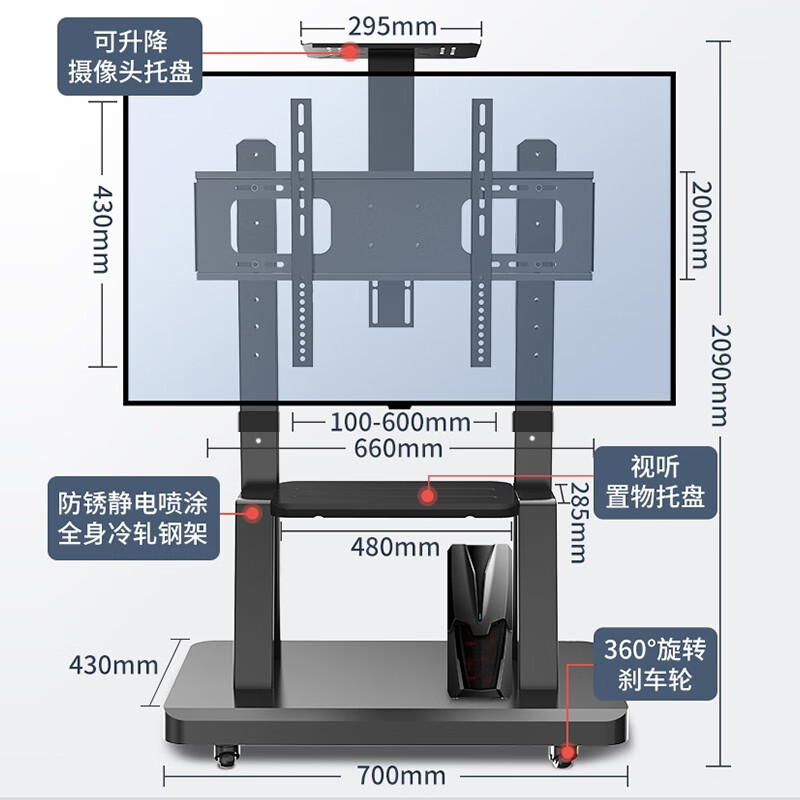 贝石 移动电视支架(32-100英寸)通用落地电视挂架电视推车 视频会议显示屏移动推车落地电视支架 【32-75英寸】家商两用 视听托盘价格:289.00元!