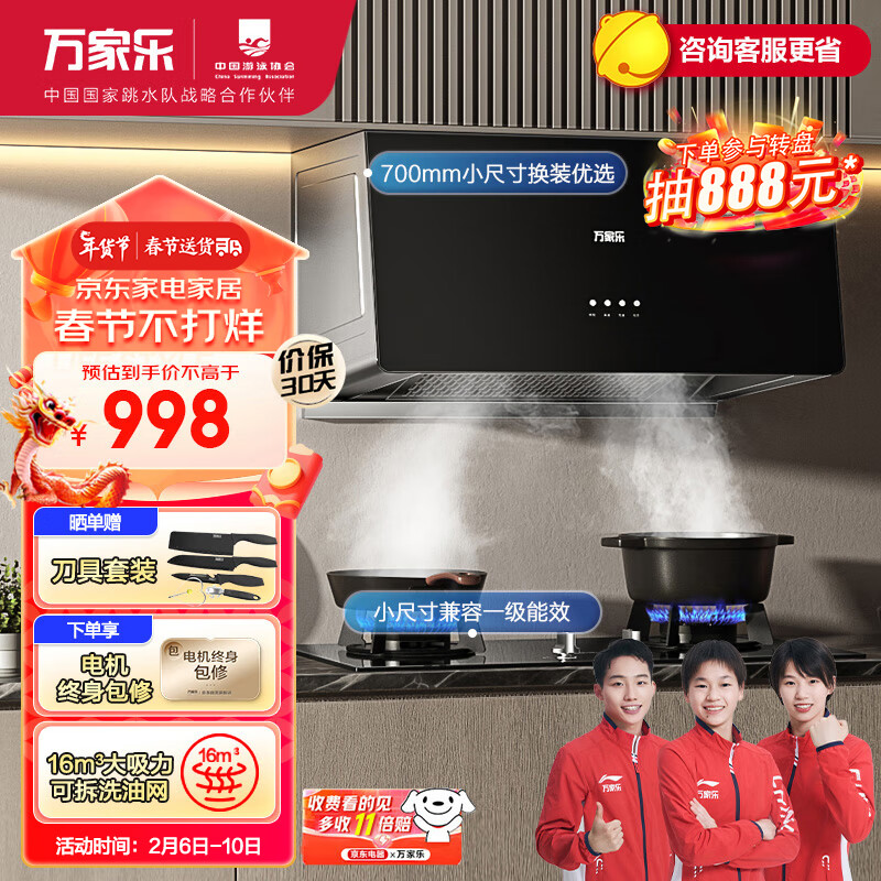 万家乐 抽油烟机 中式油烟机灶具套装16m3/min小尺寸大吸力深腔拢烟小户型烟灶套装AZ1+KA031B液化气价格:969.00元!