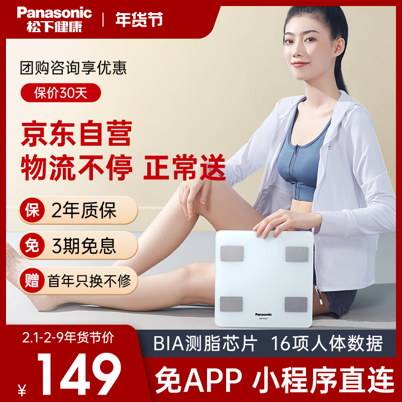 松下(Panasonic)体脂秤智能电子秤EW-FA27体重秤家用精准减肥用人体BMI高精度电子称生日礼物公司年会礼品奖品价格:165.56元!