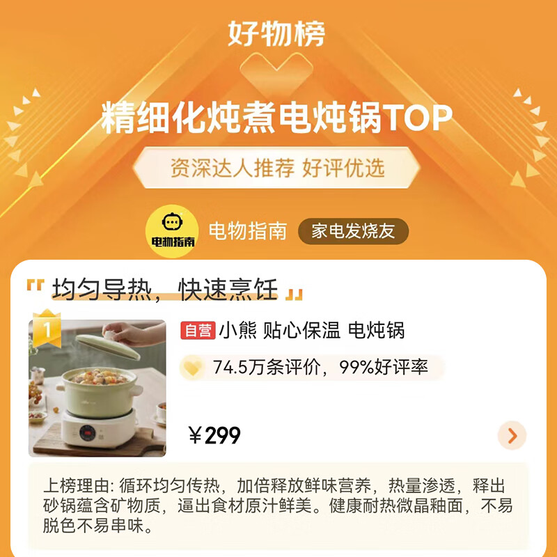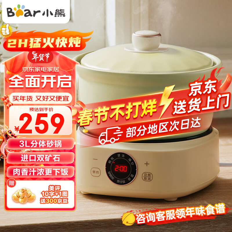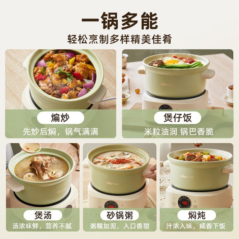 小熊(Bear)电砂锅 电炖锅 煲汤锅 炖汤锅 电炖盅 焖炖锅 养生煮粥锅煲仔饭快炖分体式电砂锅DSG-D30S1 3L价格:259.00元!