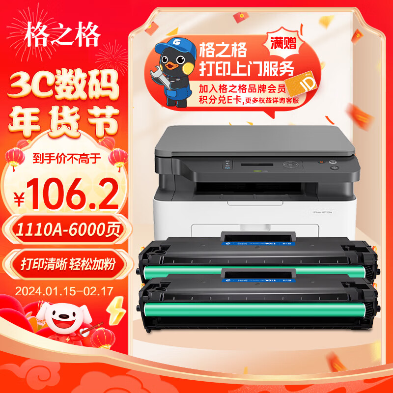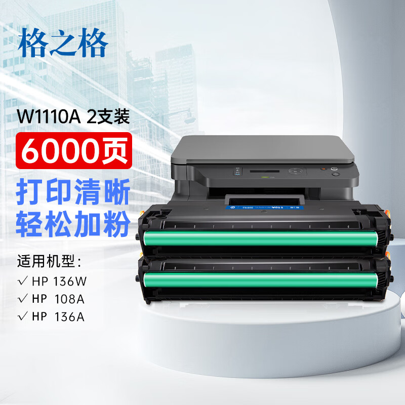 格之格136w硒鼓 110a硒鼓适用惠普108w硒鼓hp mfp136w墨盒 136a 136nw 108w碳粉138p w1110a打印机粉盒双支装价格:118.00元!