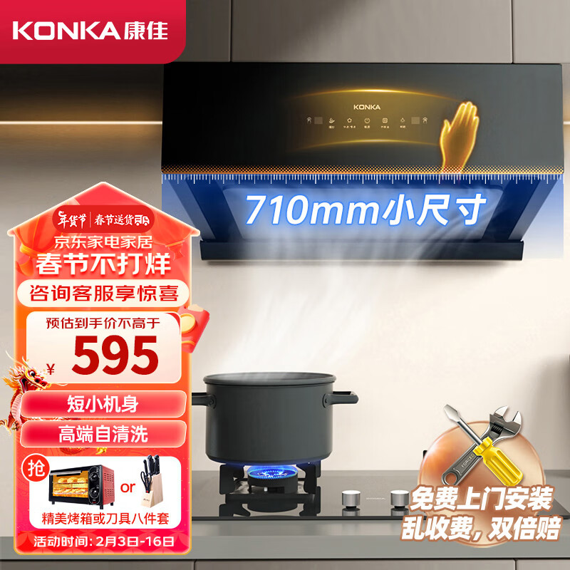 康佳(KONKA)抽油烟机中式 18m3/min爆炒大吸力 710mm超薄小尺寸 挥手 自清洗 顶吸式排烟机 CXW-300-KZ15价格:595.00元!