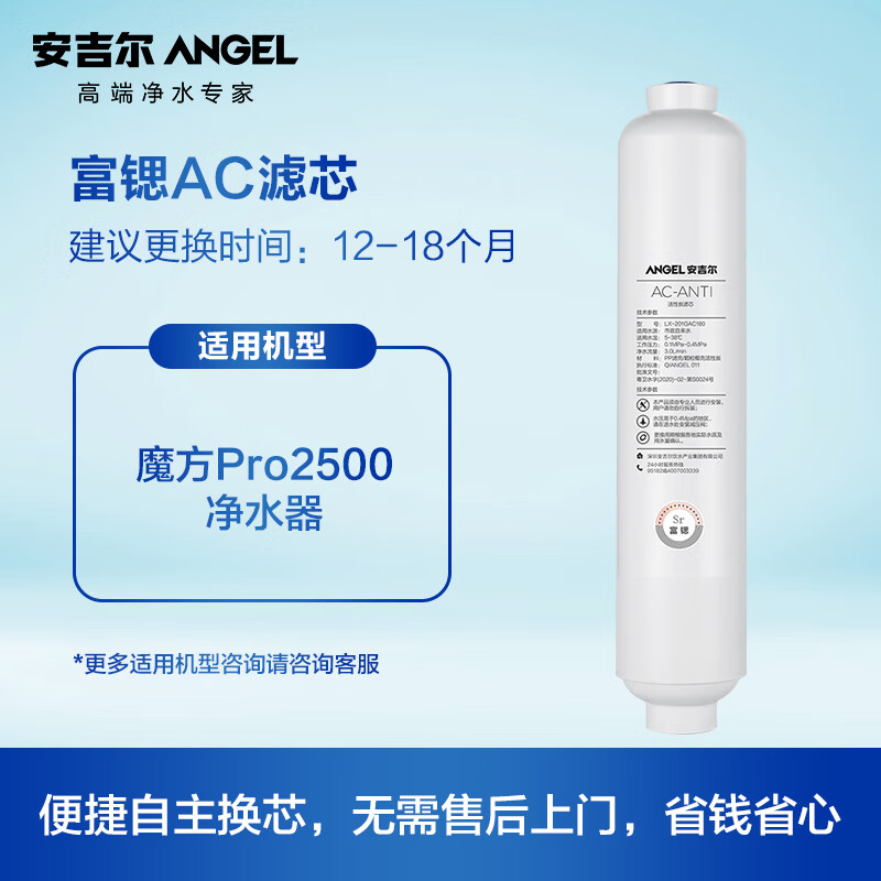 安吉尔净水器滤芯 富锶AC滤芯 后置活性炭 适用于魔方Pro2500/2900(J3472-ROB120/J3573-ROB138)价格:158.00元!