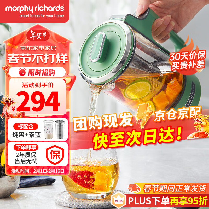 摩飞电器(Morphyrichards)养生壶 分体便携式迷你煮茶器 烧水壶 小型办公室家用 多功能煮茶壶分体式热水壶0.6L MR6085 绿价格:294.00元!