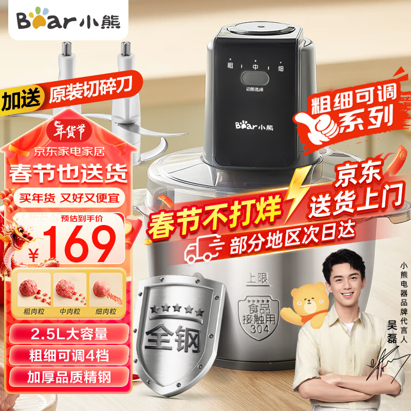 小熊(Bear)绞肉机家用 绞馅机 碎肉机 电动多功能全钢搅拌打肉机 肉馅蒜蓉机 大容量粗细可调QSJ-C04X8 2.5L价格:169.00元!