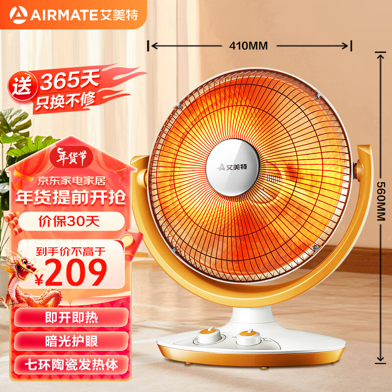 艾美特(AIRMATE)取暖器家用/小太阳/电暖器/电热炉/烤火炉/鸟笼取暖器 花篮式多角度调节定时远红外 HF12081T-W价格:209.00元!