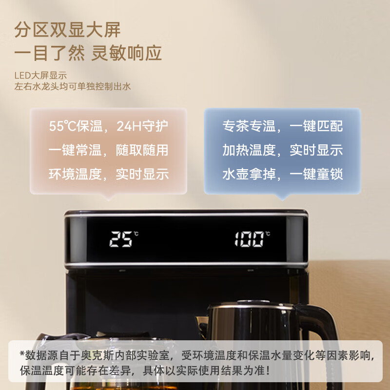 奥克斯(AUX)家用茶吧机大屏下置水桶饮水机 双温双显双出水口 立式智能遥控茶吧机冷热款YCB-0.75-58价格:408.00元!