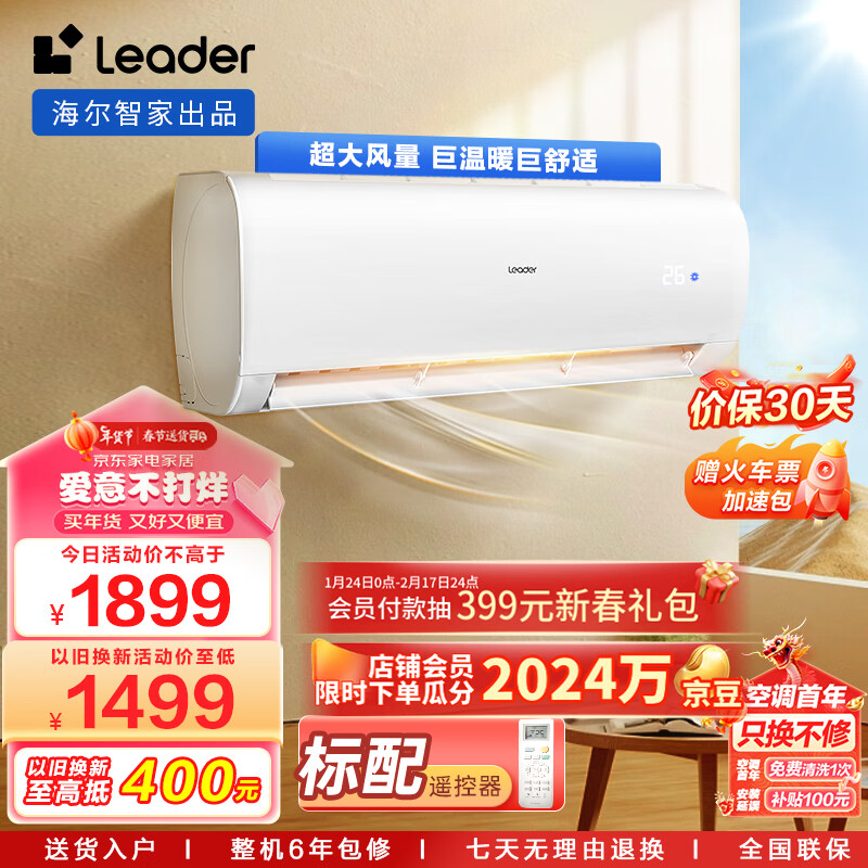 Leader 海尔智家出品 1.5匹变频空调挂机 新能效壁挂式空调 自清洁 KFR-35GW/83@T-Xc 以旧换新价格:1899.00元!